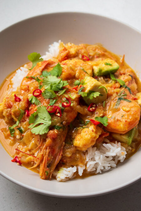 This oven baked chicken curry will have you and your family licking their plates clean! It’s flavourful, homey and just down right delicious. You can customize this recipe in many different ways, so I’d recommend you give it a go as is and then add your own twist in the next round. I serve this oven baked chicken curry with some cilantro and lime infused basmati rice, which I’ve added to the below recipe. You can also serve it with garlic naan, bunny chow style, couscous or even mash (why not?).