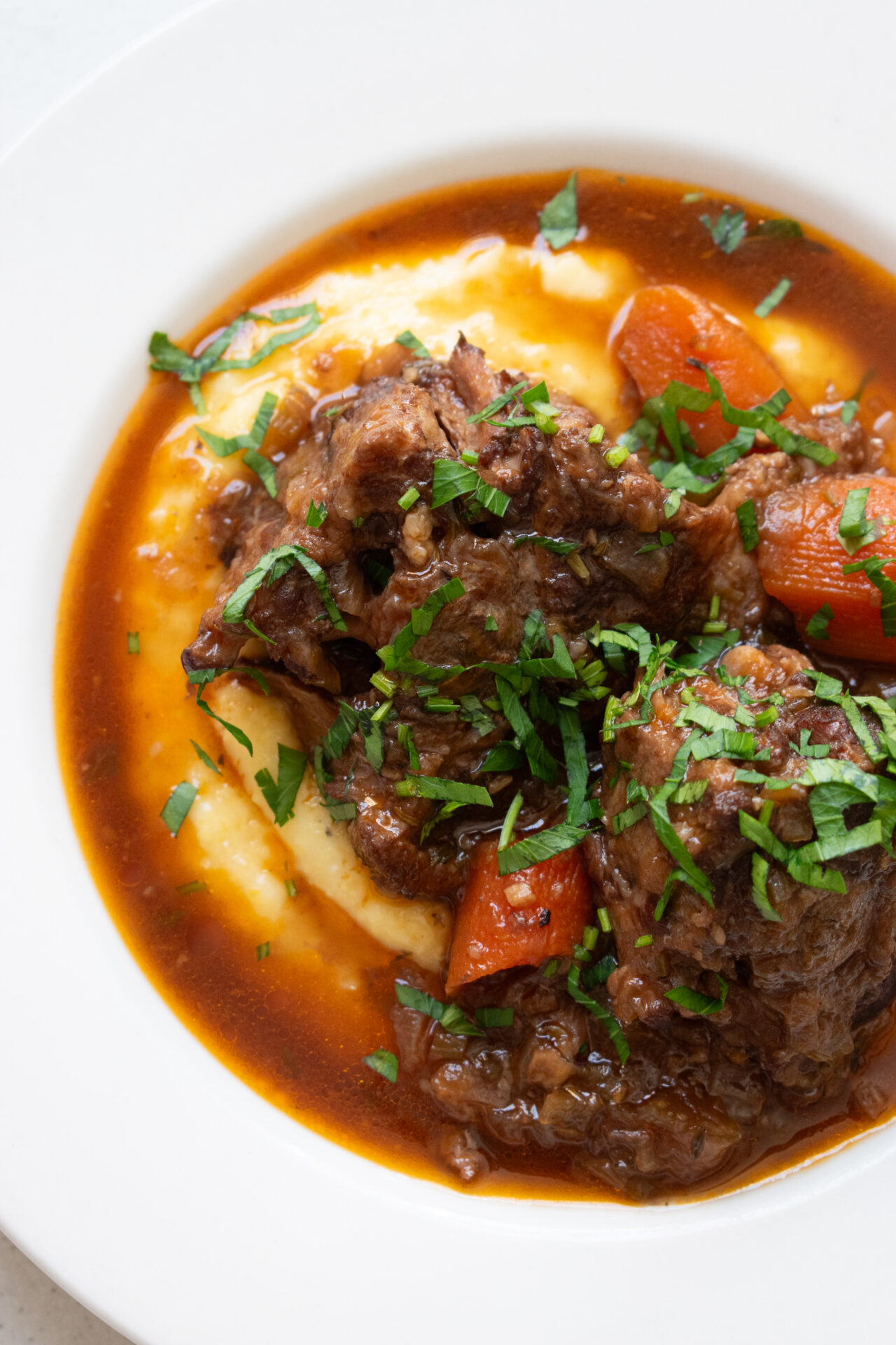 Braised Oxtail is one of my absolute favourite dishes as a meat eater! I enjoy the rich gravy that coats this beautifully tender meat that ready to just fall off the bone at any moment… serving this with fluffy mash, creamy polenta, mielie meal or rice – I mean this list goes on and on. Pasta is a good one too!