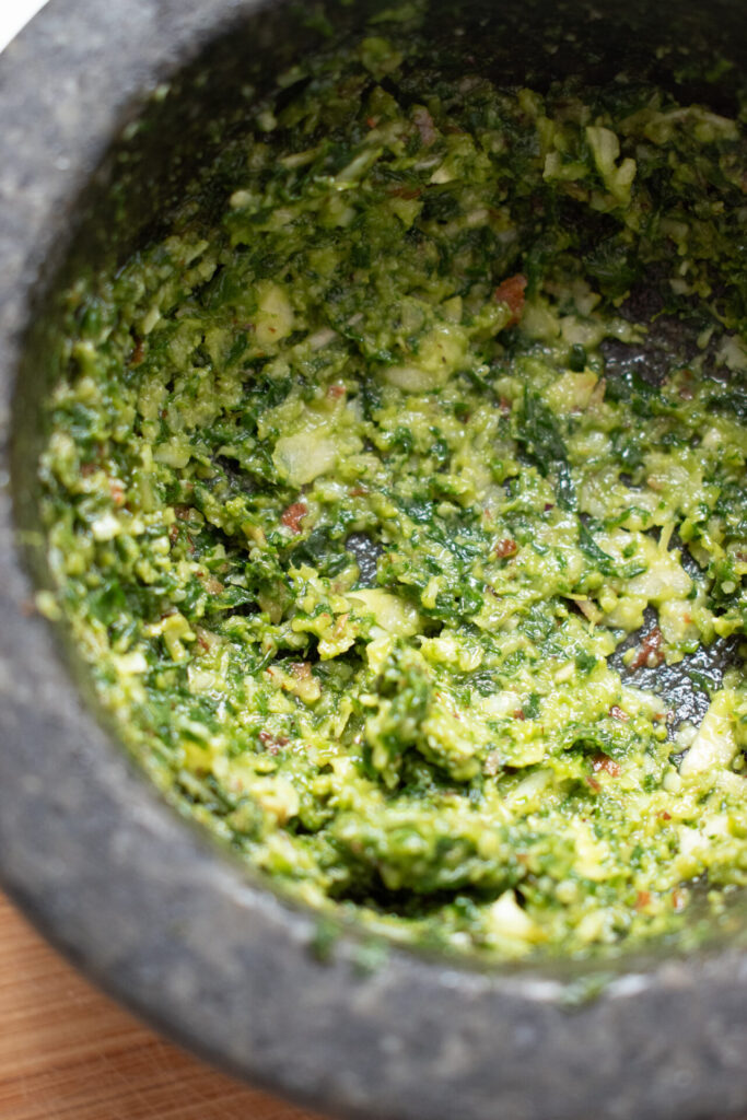 - Basi Pesto: whether you use store bought or homemade pesto, make sure it doesn't already have garlic added. If so, refrain from adding the additional clove of garlic as too much garlic will overpower the dressing.