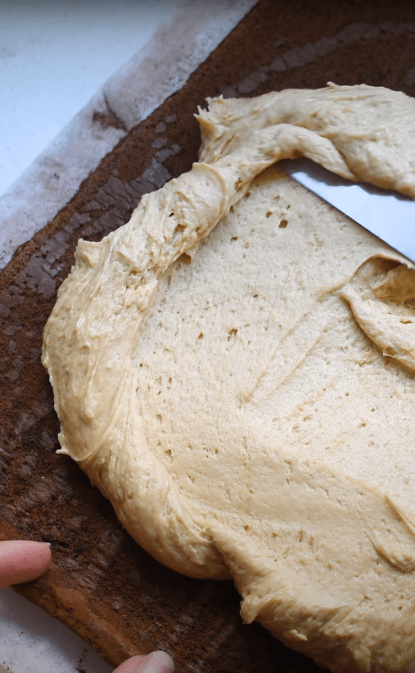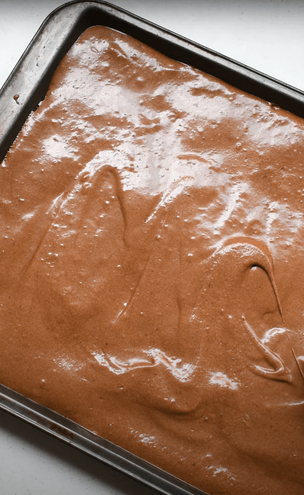 - Spread batter evenly into the prepared pan. It will be a very thin layer. Shimmy the pan on the counter to smooth out the top. Bake for 10 minutes or until the top of the cake gently springs back when touched with your finger. Do NOT over-bake.