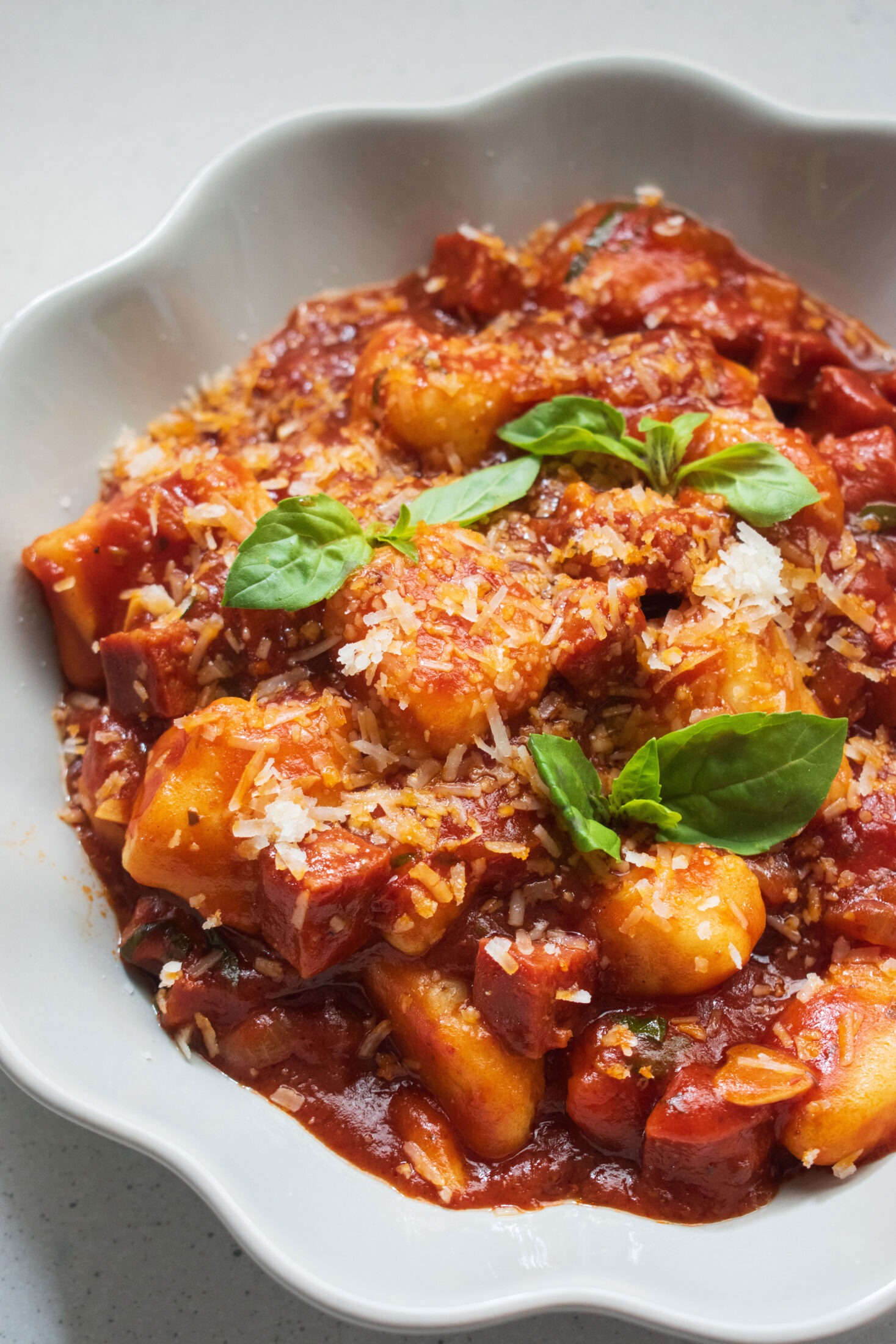 To keep things interesting, we’re bringing chorizo to the party. Spicy, smoky, slightly rebellious chorizo. The kind that instantly transforms your kitchen from “just cooking dinner” to “building a personality with food choices.” Paired with the fiery kick of arrabiata sauce, it gives this dish a boldness that contrasts beautifully with the gentle, fluffy gnocchi. It’s like a love story between opposites—though not the sappy rom-com kind; more like the quirky indie film where everyone wears fun socks.