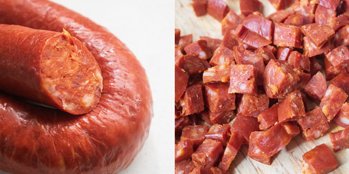 - 200 grams Spanish chorizo sausage cubed