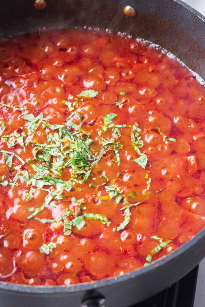 - Finish off with fresh basil and chilli. Set aside and keep warm until the gnocchi is ready.