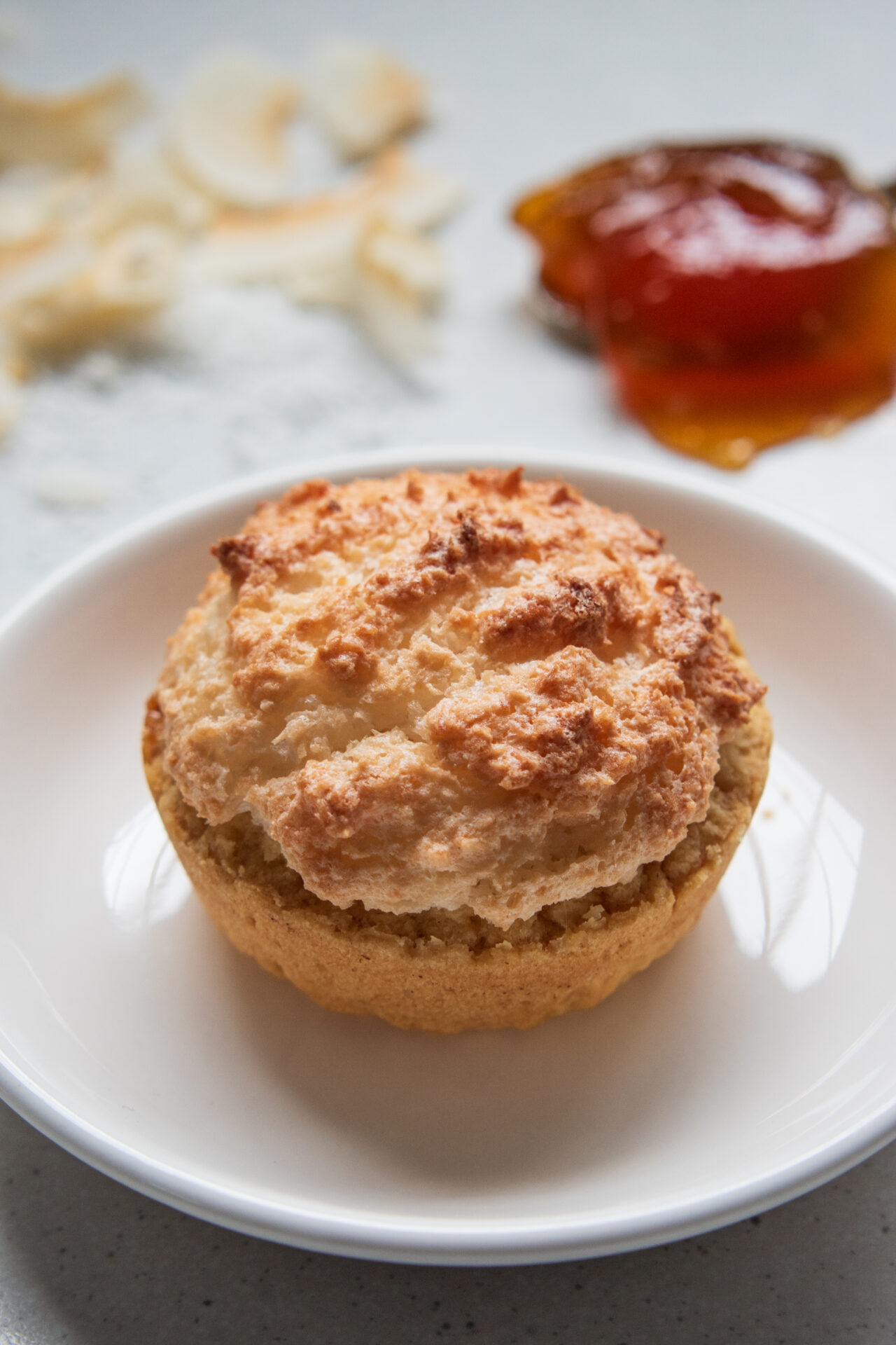 - Add about 1 tbsp of coconut-meringue on top of the jam and spread evenly, covering the jam and sealing the edges as much as possible. This'll also ensure that the jam doesn't bubble over.