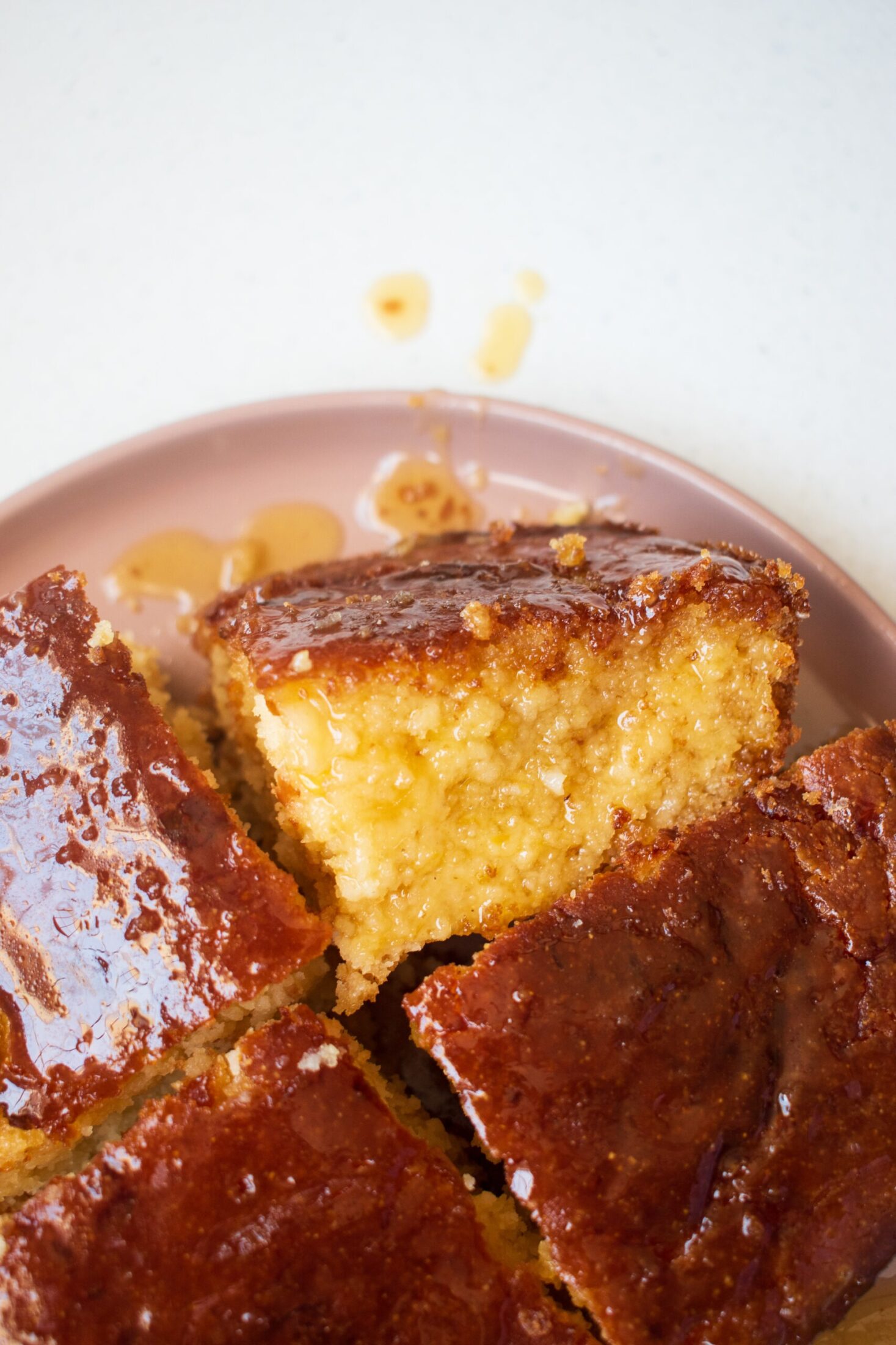 - Removed from the oven, poke the sponge using a toothpick, and generously coat with more of the honey butter. You can never have enough honey butter so make sure to make extra if you want.