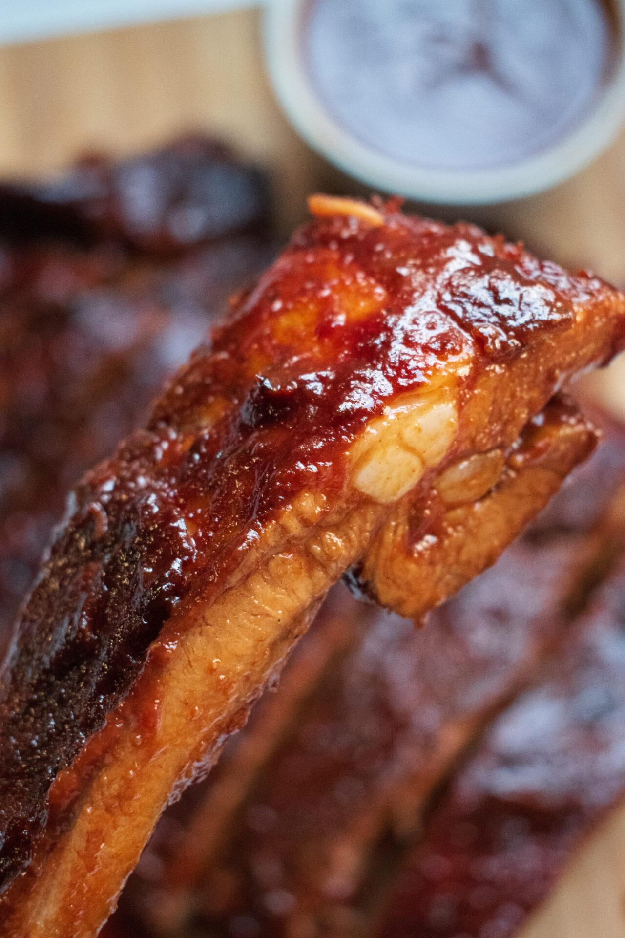 6. To cook ribs on open flame: – I love making these on the BBQ when I’m entertaining! Here’s how: Follow recipe to end of Step 4 (i.e. 2nd baked uncovered to make Rub crusty). Brush bony side of ribs with sauce, then cook on BBQ indirect heat on high (bony side up) with lid down for 5 minutes.
