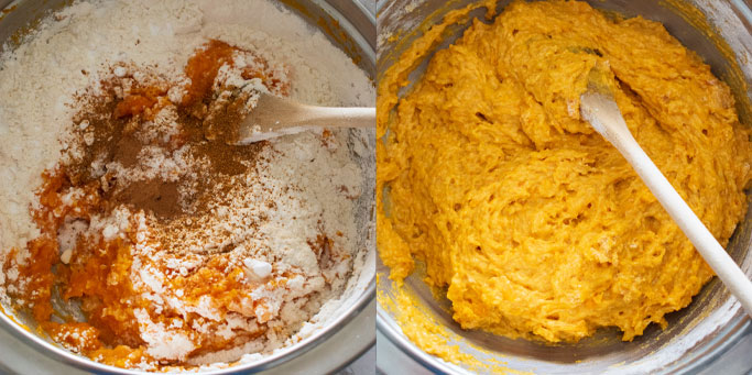 One cup of cooked pumpkin or butternut is equivalent to approx. 800-1kg worth of uncooked pumpkin or butternut. Cut into large cubes and steam until fully cooked. Mash until fine and drain/remove as much water from the cooked pumpkin or butternut as possible. Any unnecessary liquid will cause the batter to be much looser and possibly not cook all the way through.