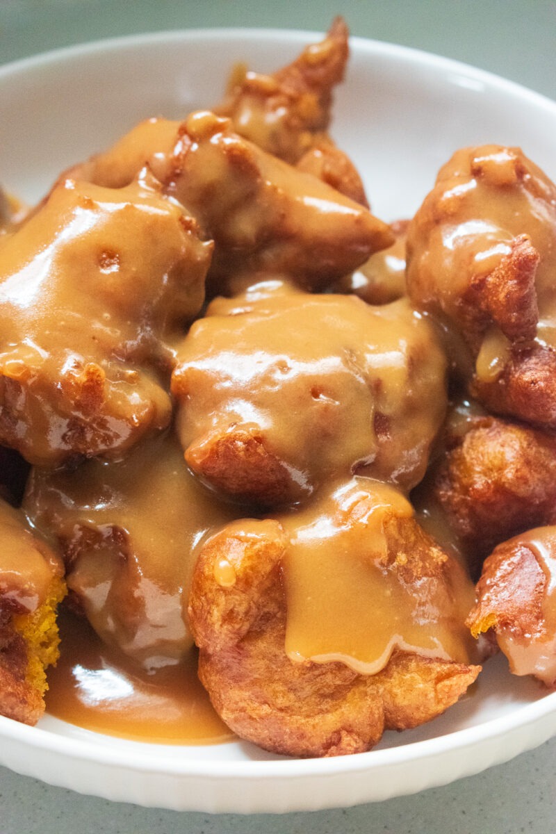 These pumpkin fritters, or “pampoenpoffertjies”, are pillowy soft, slightly crispy and coated in a sinfully more-ish caramel sauce. This isn’t your healthy vegetable option, clearly. Pumpkin Fritters is something that’s quite nostalgic for most of us South Africans and with that said we each have an “ouma” who’s recipe is the best. One thing is for sure, that this sweet addition to a plate filled with loads of savoury treats it what brings a meal together. It’s a side dish option that’ll help your guests get a taste of dessert before the dessert course has even arrived – it’s a lovely excuse for those guests with a sweet tooth.