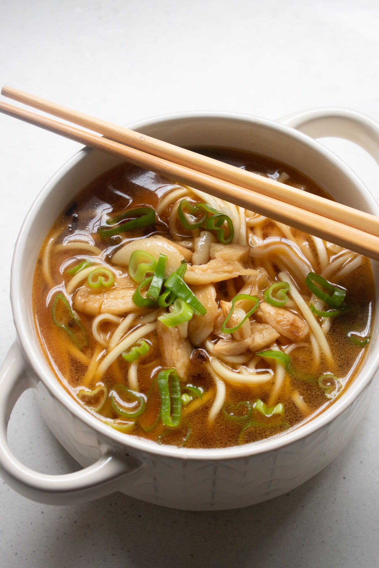 15 minute Miso Ramen with Soy-Marinated Chicken and Mushrooms