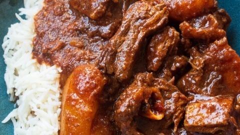 Sweet Potato & Eggplant (Brinjal) Beef Stew [WATCH VIDEO]