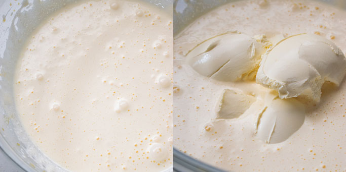 - Add the mascarpone and vanilla essence to the bowl and whisk until smooth, about 2 minutes.